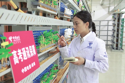 为做好2021年高考通信保障,中国电信安徽蚌埠分公司对市、县所有考点及教育招生考试院涉及的电路、专线等进行了全面巡检,保障高考期间监控画面传输质量。同时,完成对各考点周边无线信号的优化。高考期间,全区将停止一切影响现网业务的割接,并组织专家团队进行现场值班和巡检,确保高考期间网络运行稳定。图为中国电信安徽公司优秀共产党员、青年专家人才邵梅在核心机房巡检,排查设备隐患。