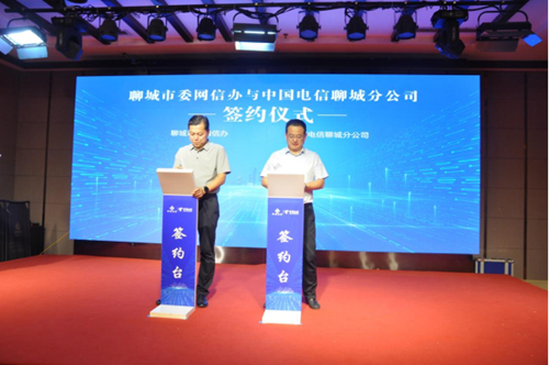 会议现场,中国电信聊城分公司党委委员、副总经理于海龙代表聊城公司与各级领导共同开启了“聊城市数字乡村建设现场会”启动仪式,并与聊城市委网信办签署了数字乡村建设推进战略合作协议。