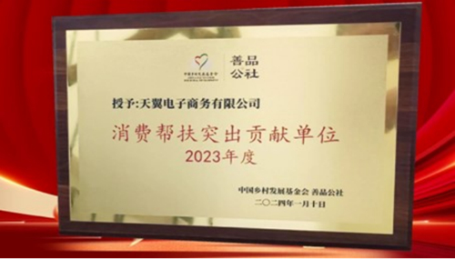 翼支付作为农业农村部首届中国“土特产”集中推介大会唯一指定的全国“土特产”线上推介平台,承接了“全国土特产品牌馆”平台建设,荣获由中国乡村发展基金会颁发的2023年消费帮扶督促贡献单位荣誉。