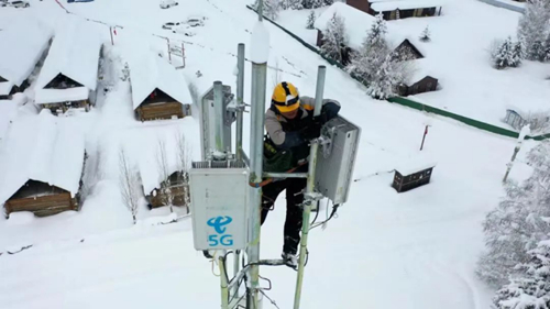 “2001年,我们有了第一条电话线,那时候大部分人都还在放牧,现在大不一样了。”记者下山的路上,风雪小了一些,大家也得以瞥见远处矗立的基站。卡力哈尔告诉记者,近年来中国电信逐步在这阿尔泰山深处进行信息基础设施的现代化建设,禾木村的通信网络建设从3G时代飞速跨越到4G、5G,他自己也经历了从铜线到光缆的全过程。新疆电信在这片土地上不仅完成了三代通信技术的跨越,更绘制了一幅以通信网络发展为基石的“数字乡村”画卷。卡力哈尔拿出手机向我们比画道,自己做旅游的同乡们,用一场直播,便能够推广宣传自家民宿。搞养殖的同族,一个App,就可以远程掌握牲畜情况,这些还都是他自己去推广的。