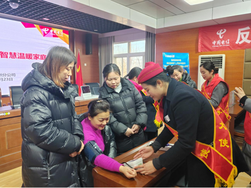 2024年1月23日,江苏徐州电信青年团员来到中阳里街道古丰社区,开展“文明点亮城市、青春志愿同行”主题志愿服务活动。广大团员开展组织反诈专题讲座,义务测量血压、发放暖心饮品、宣讲文明创建知识并发放春联,与市民共享冬日里的志愿服务暖阳,得到市民的一致好评。