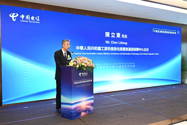 工业和信息化部应急通信保障中心主任陈立东在致辞中充分肯定了近年来中国电信坚定落实“一带一路”倡议,深化“一带一路”国际合作,高质量推进基础设施互联互通建设所取得的成效,并表示手机直连卫星业务在香港实现运营,对于开展抢险救灾、海上救援等应急通信,保障人民群众生命财产安全,辐射推动共建“一带一路”等方面都将发挥积极的作用。