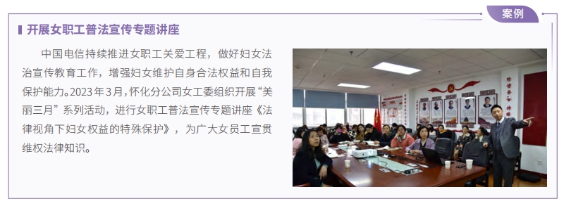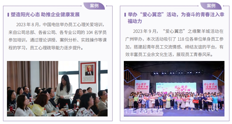中国电信依法保护员工权益,打造全方位员工关爱体系,持续健全制度保障,为员工打造职业发展通道,携手共创员工之家。