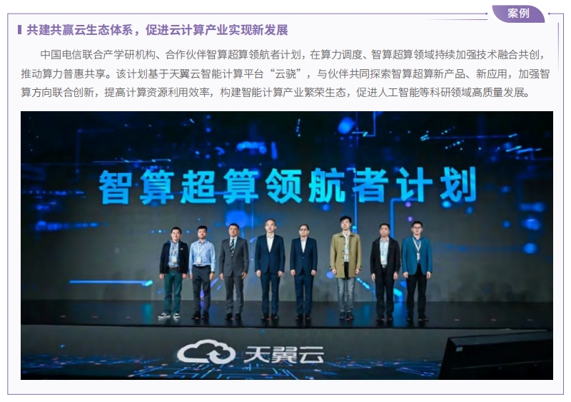 依托算力、运力、智力三力合一优势,挖掘客户智算服务需求,抢占市场先机。构建全栈大模型智算服务,包括打造智算数据中心、打造云智超一体化智算加速平台“云骁”、推出一站式智算服务平台“慧聚”、构建国云大模型生态,形成云智一体的智算服务体系,已接入曙光、华为、腾讯等智算、超算供给方,具备统一调度能力。打造慧泽政务大模型,用于坐席、公务辅助等场景,与贵阳政务中心、广东亿讯等标杆政府客户达成合作意向并开展项目试点。