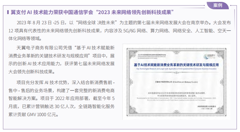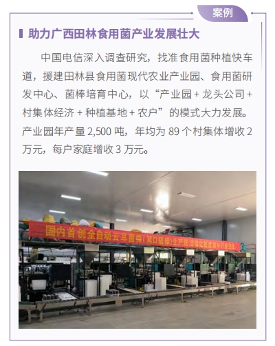中国电信将数字乡村建设作为深化行业帮扶、定点帮扶的重要举措,打造数字赋能乡村振兴样板。数字乡村平台融合视联网 +AI+ 天翼云播三大核心能力,面向区县、乡镇、行政村等政府和村民,提供便民服务、积分银行等信息化服务,以及农村养老、消防安全、智慧种植等数字化场景服务,实现乡村基层治理和农民生产生活智能化,已累计服务超过 36 万个行政村,服务村民超过 1 亿人。