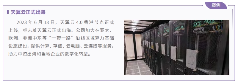 中国电信积极贯彻落实数字中国建设整体布局规划,高水平承担云计算原创技术策源地等国家平台的建设任务,推进“天翼云 国家云”品牌建设。