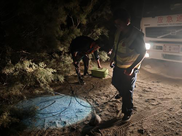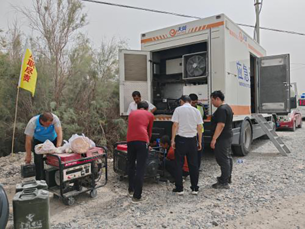 中国电信新疆公司通信保障人员连夜赶赴民丰县受灾区域