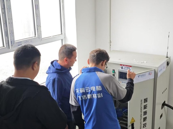 电信维护人员正在维护新源县智能设备