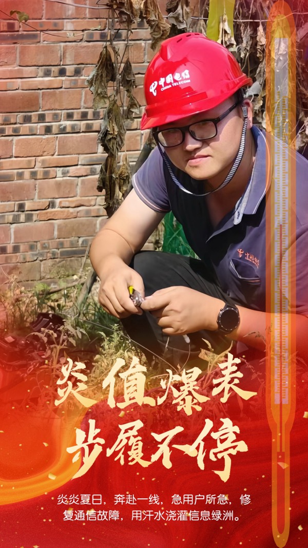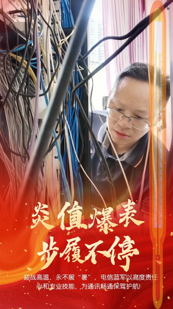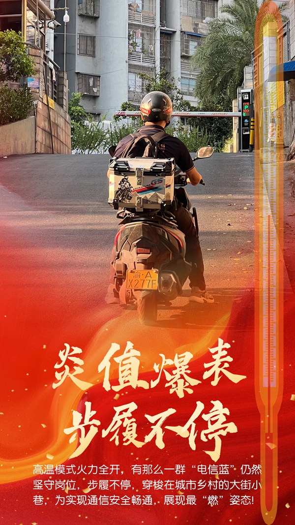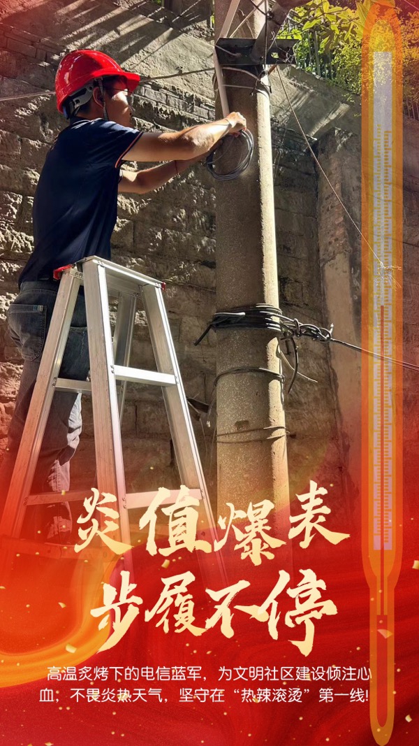 八月末,重庆遭遇持续热浪侵袭,高温模式火力全开,有那么一群“电信蓝”仍然坚守岗位,步履不停,穿梭在城市乡村的大街小巷,为实现通信安全畅通,展现最“燃”姿态!