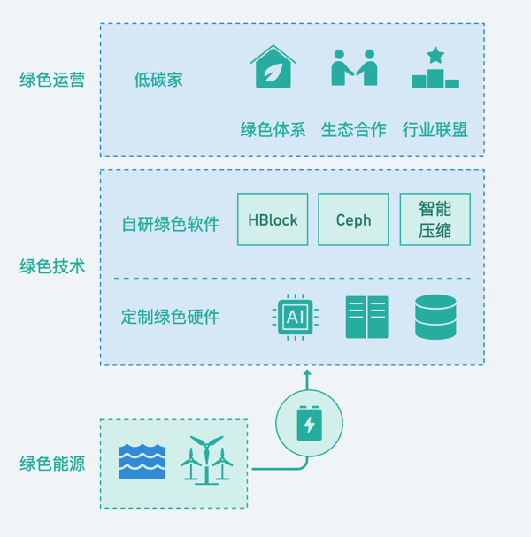 绿色云盘的资源池存储,通过定制CPU和自主研发DPU,提升15%以上算力算效,有效降低功耗;通过智能调度,提升15%的资源池利用率,电力消耗降幅达到了30%。上述措施绿色云盘耗电每年可节省150万度。