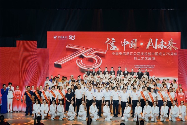 礼赞新中国,奋进新时代。9月29日下午,中国电信浙江公司、浙江省电信工会在杭州职工文化活动中心举办了“信中国·AI未来”为主题的庆祝新中国成立75周年员工才艺展演。来自全省11个地市,14家单位近200名“电信人”展示职工才艺、传承红色文化,共庆新中国75周年华诞。省委网信办、省通信管理局、省经信厅、省文明办、省总工会、共青团浙江省委员会等部门相关领导应邀出席。